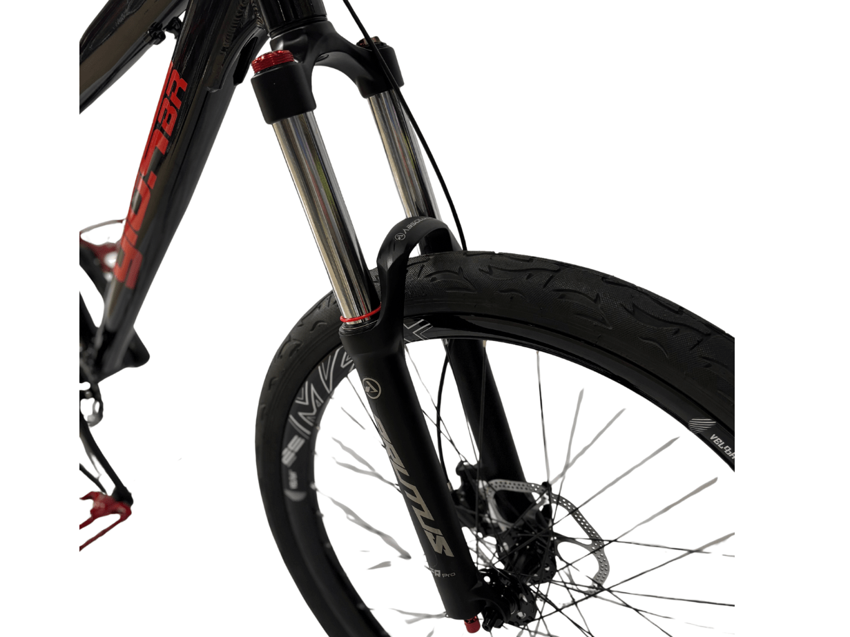 Suspensão Brutus FR Pro: absorção firme, perfeita para impacto e controle no freeride.